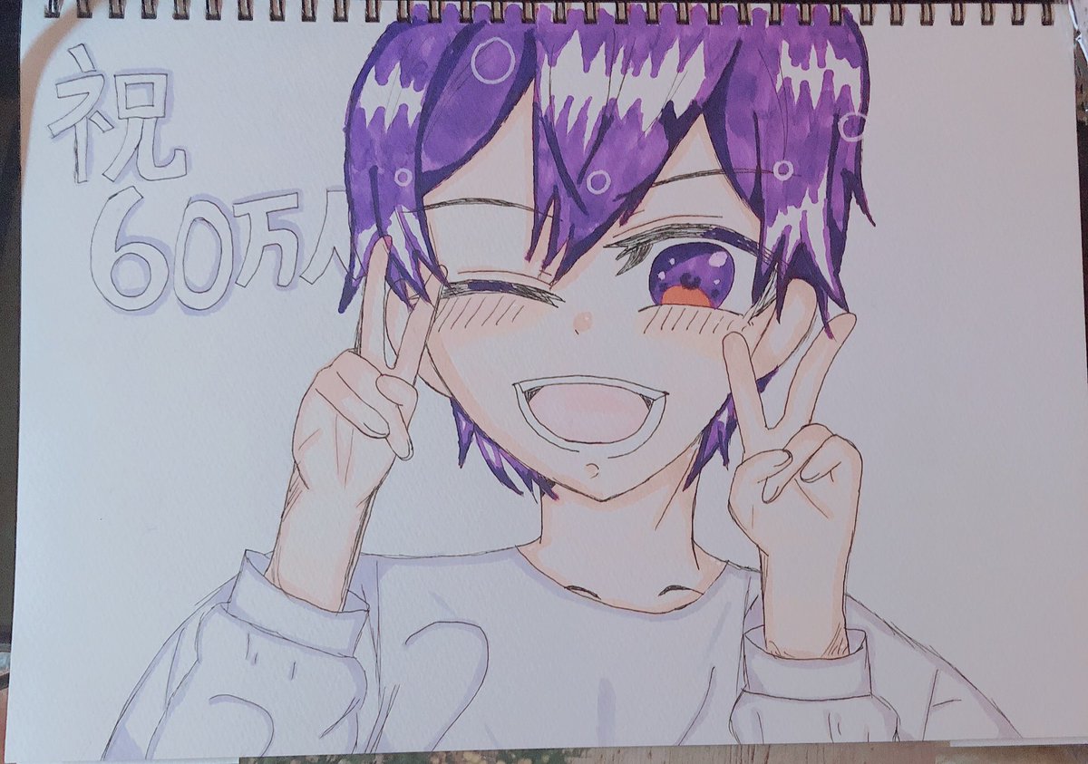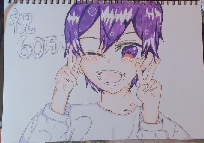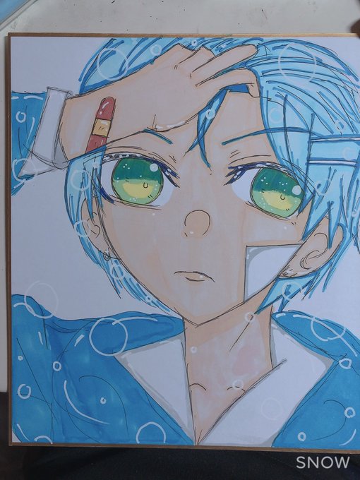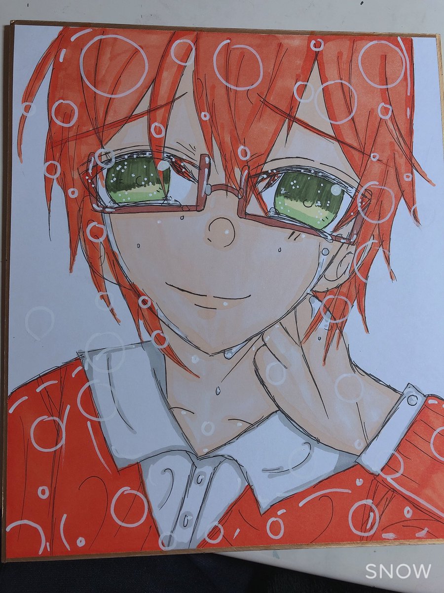 絵柄変わりすぎ案件w色紙制作の合間に書いてたw今からジェるぅとコラボ見ながら色紙続き書きますwちなみにヤンキーころんくんのつもり、かきあげかけんから自分の写真撮ってそれ見ながら書いたw #ころんギャラリー #ころんくん #すとぷりギャラリー