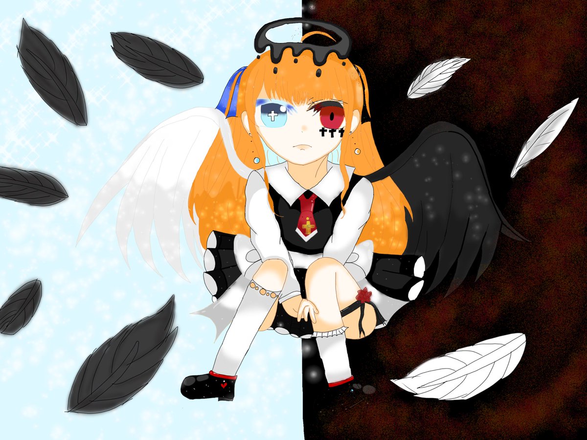 堕天使みかんです🪶 いつもと塗り方変えてみたんやけどどう??結構自信作とか言っちゃお☆ #イラスト #イラスト好きな人とつながりたい #イラスト練習 #イラスト好きと繋がりたい #オリキャライラスト