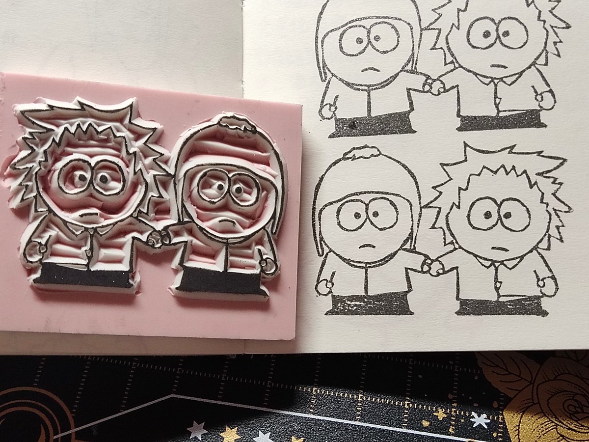 整点没发过滴东西 #SouthPark #southparkfanart #spbutters #spkenny #spBunny 这俩真的很萌🤧🤧🤧❤️❤️❤️ 我刻的橡皮章真的很菜(泪)