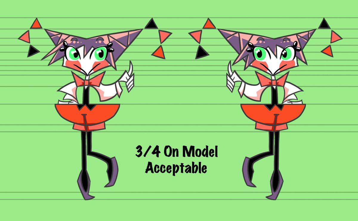 Made a neat little construction guide for her. This is my first time making one of these, so feedback is appreciated! Next step are pose/expression sheets and a lip sync guide. #characterdesign #characterconcept #animation #2danimation #artistsontwitter