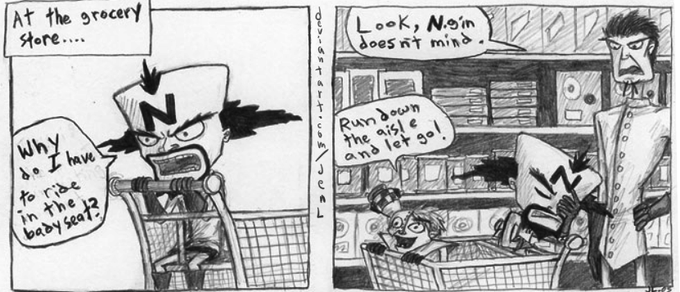Here's a classic moment with everyone's favorite mad scientists from the Crash Bandicoot series. I miss the days when I drew comics about Cortex, Gin and Tropy trying to do normal everyday tasks. =P #CrashBandicoot #CrashBandicootFanArt