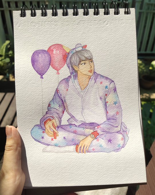 🃏Hi I'm good boy V~♥ (( ถ่ายแล้วสีเพี้ยนเสียดายมากเลยTT )) #btsfanart #V #TAEHYUNG #dailybtsfanart #Watercolor pic.twitter.com/KSeNUSaYfL