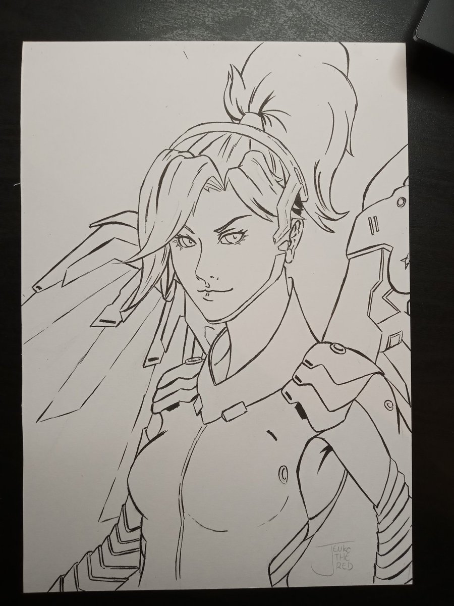 Day 05 of #inktober Mercy from Overwatch. So far this has come out the best in my opinion. #inktober2021day5 #inktober2021 #overwatch #mercy #ArtistOnTwitter #fanart
