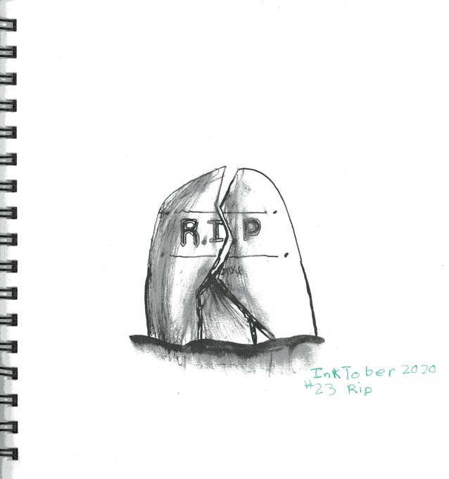 by Leah - 12 yo #inktober2020 #inktober @inktober @Inktober2020 Day 22 - Chef - What's a brewin'? If only everything worked that well with the snap of a finger! 🧙 Day 23 - Rip - I see what she did there...a "ripped" RIP 💀😆