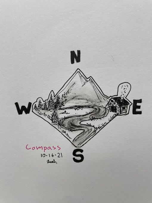 Leah (13yo) loves @inktober ! Day 16 “COMPASS” Her thoughts were you need a compass when you’re out hiking, so she made a compass out of the wilderness 🧭 #INKTOBER2021 #inktober #IPEVO #inktoberday16 #inktober2021compass #inktoberchallenge @ipevo