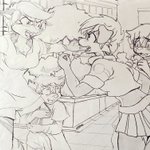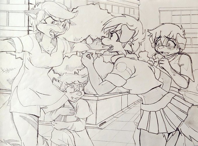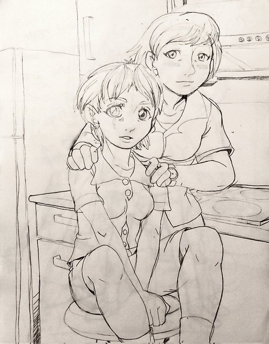Christopher, Melanie and Kinnie. The little Melanie love old school roller and jumping everywere like a motocross byke.🙂 #sketch #anime #manga #Illustrations #ArtistOnTwitter #blackandwhite #draw #rollerskating