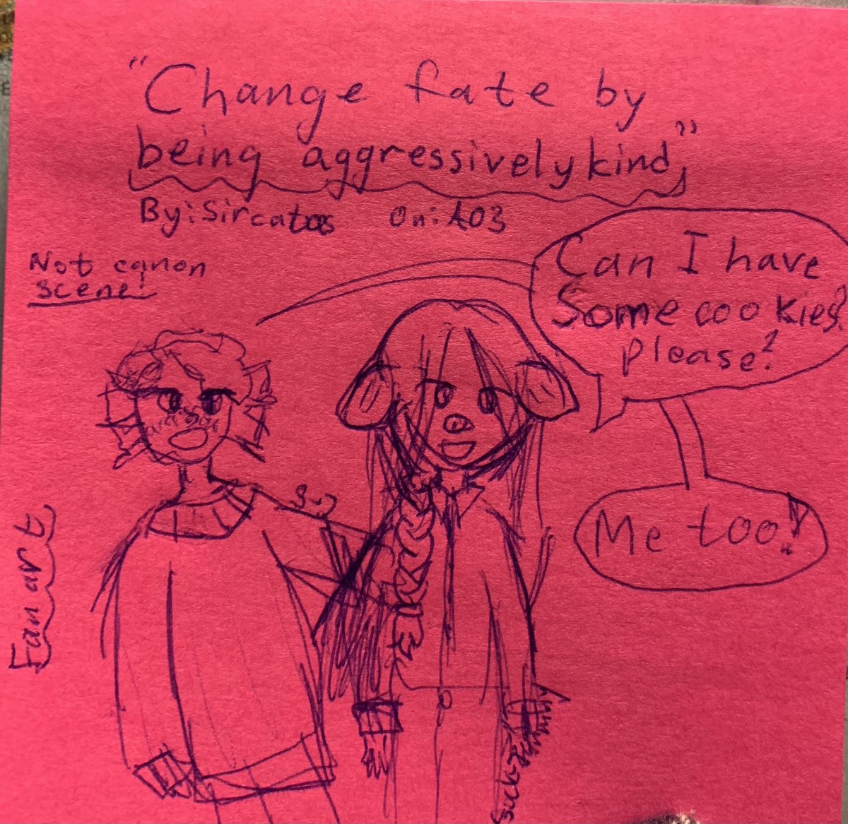 Yep yep, fanart for @sircantus AU on ao3(“Change fate by being aggressively kind”) Disclaimer: this is not an actual scene in the fic, it’s just a something I imagined. #fanart #twinstwt #technofanart #technoblade #technobladefanart #WILBUR #wilburfanart
