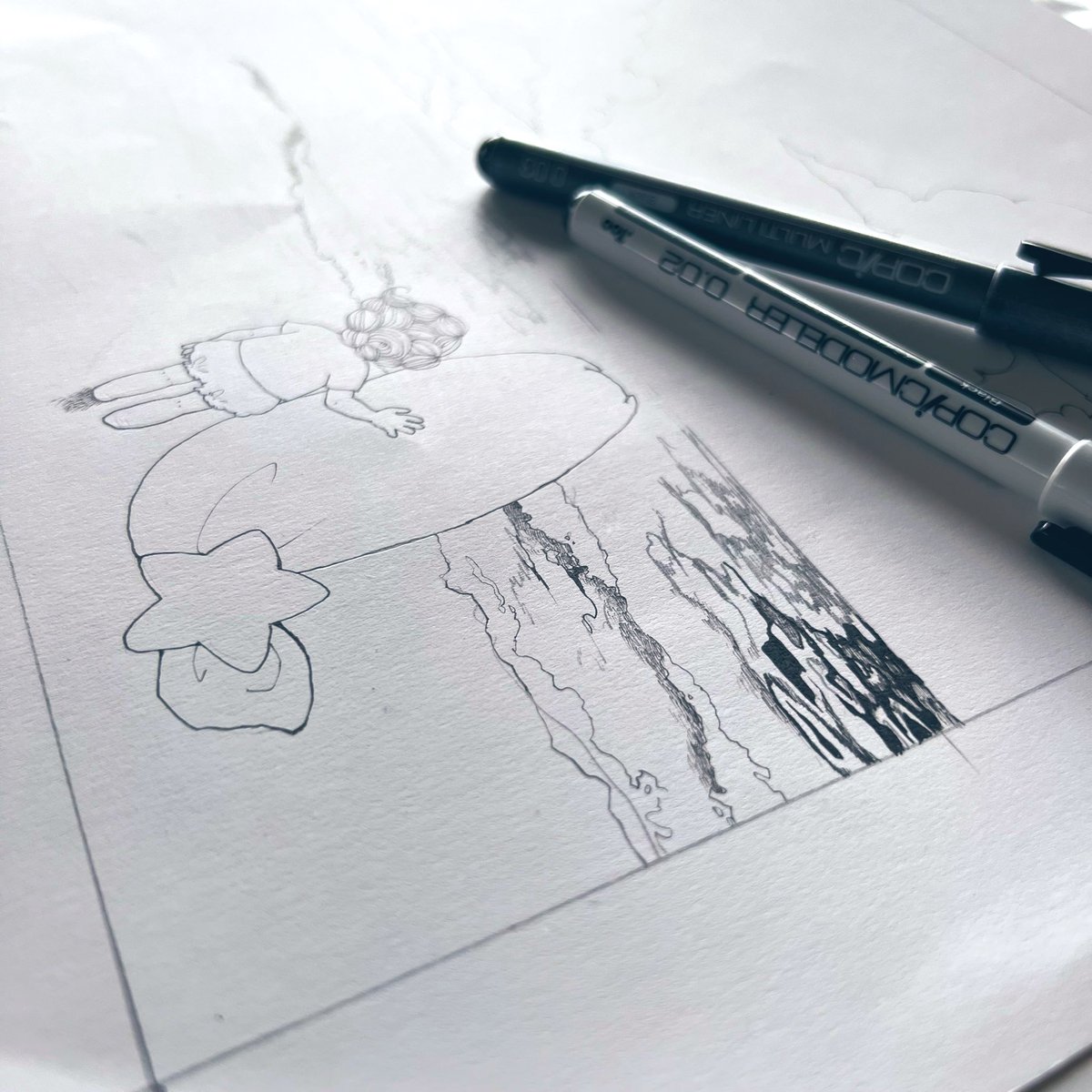 月夜とお星様と雲の上でねんね 2週間かかって出来上がりー! #絵本製作中 #出版社募集中 #線画 #ペン画 #フォロワー1000以下の一次創作作家発掘フェス #イラスト #自分を大切にできる世界を作りたい