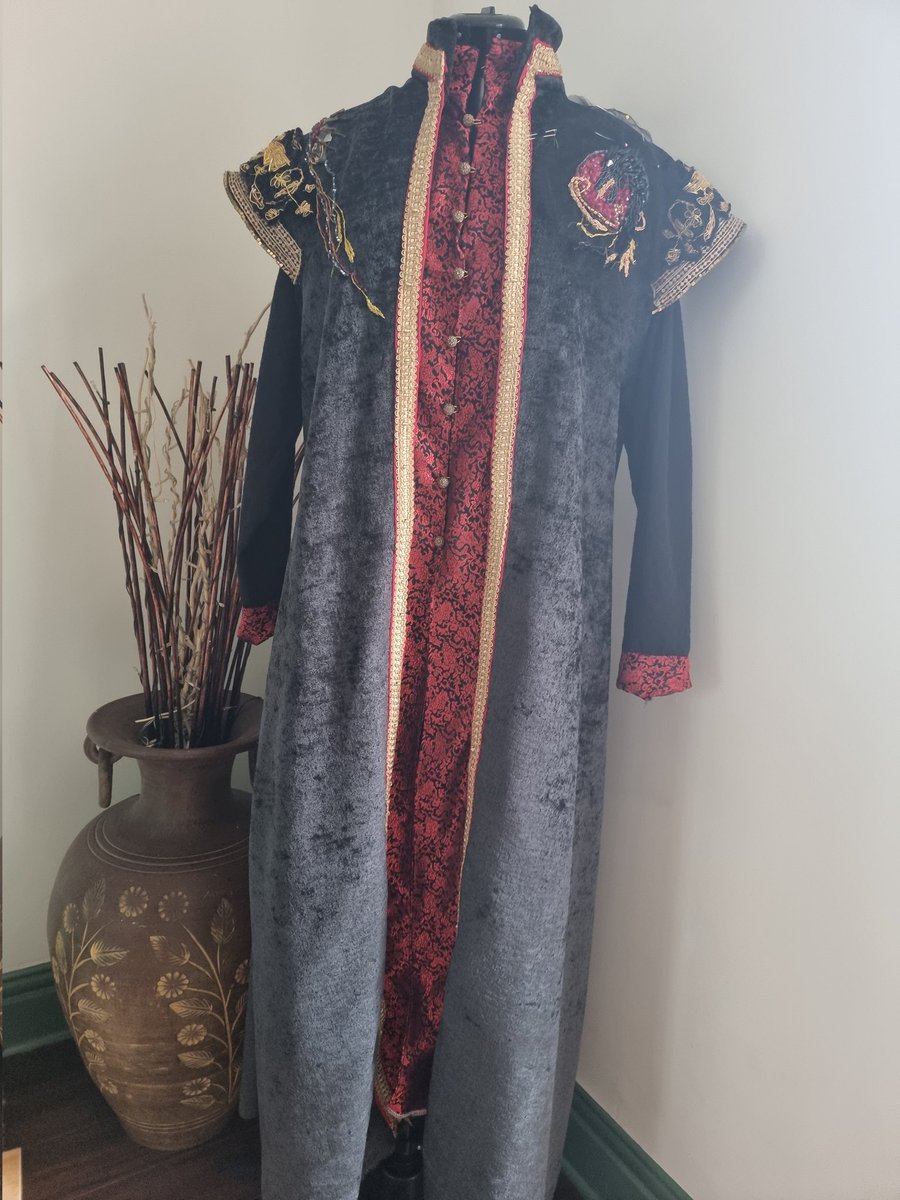 About 70% done things left to do are -necklace -crown -belt /clasp -finish dragon embroidery piece -line the coat #cosplay #HouseOfTheDragon #viserys #GameOfThrones