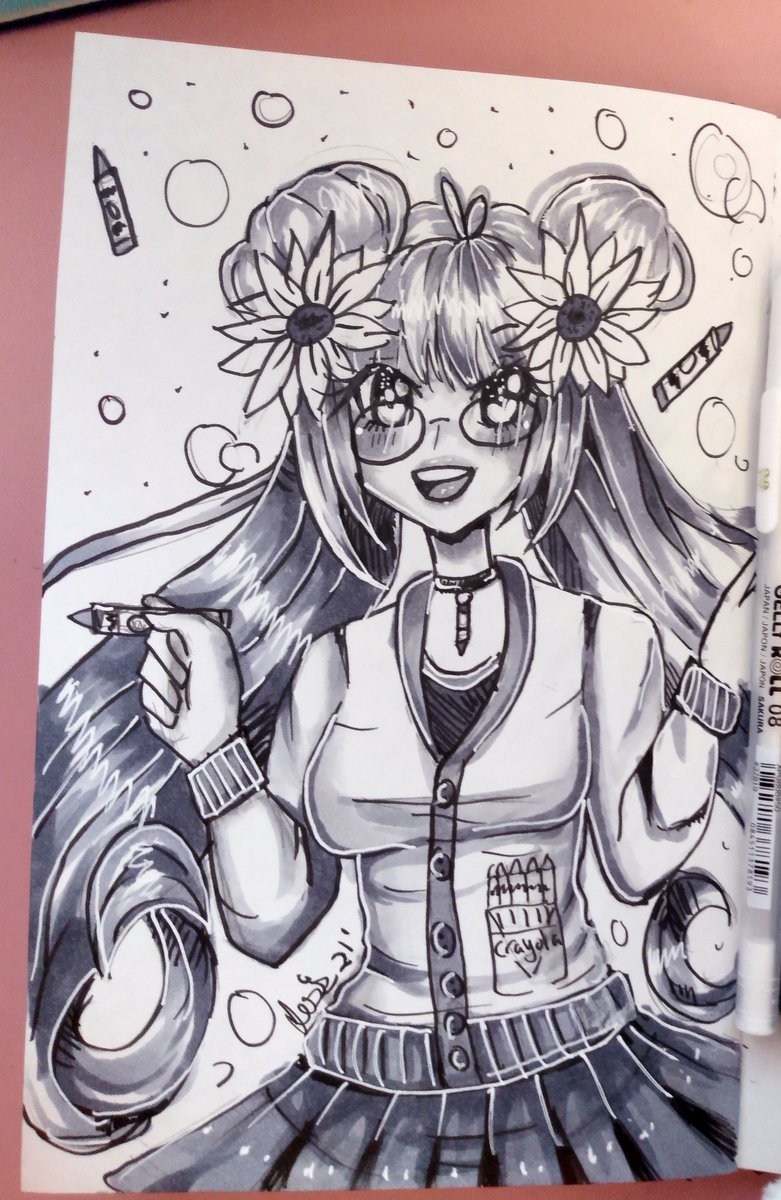 🖤 Cute Girltober Day 18: Crayon 🖍️ . #cutegirltober #cutegirltober21 #inktober #traditionalart #copic #ArtistOnTwitter