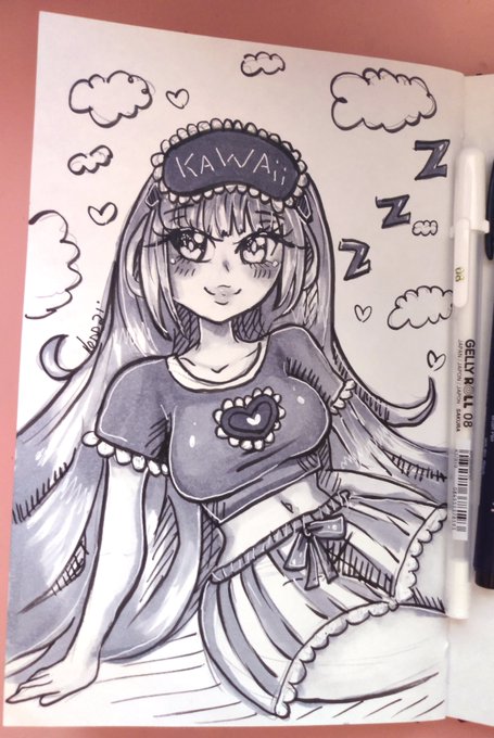 🖤 Cute Girltober Day 20: Pajamas 💤 . #cutegirltober #cutegirltober21 #inktober #traditionalart #copic #ArtistOnTwitter