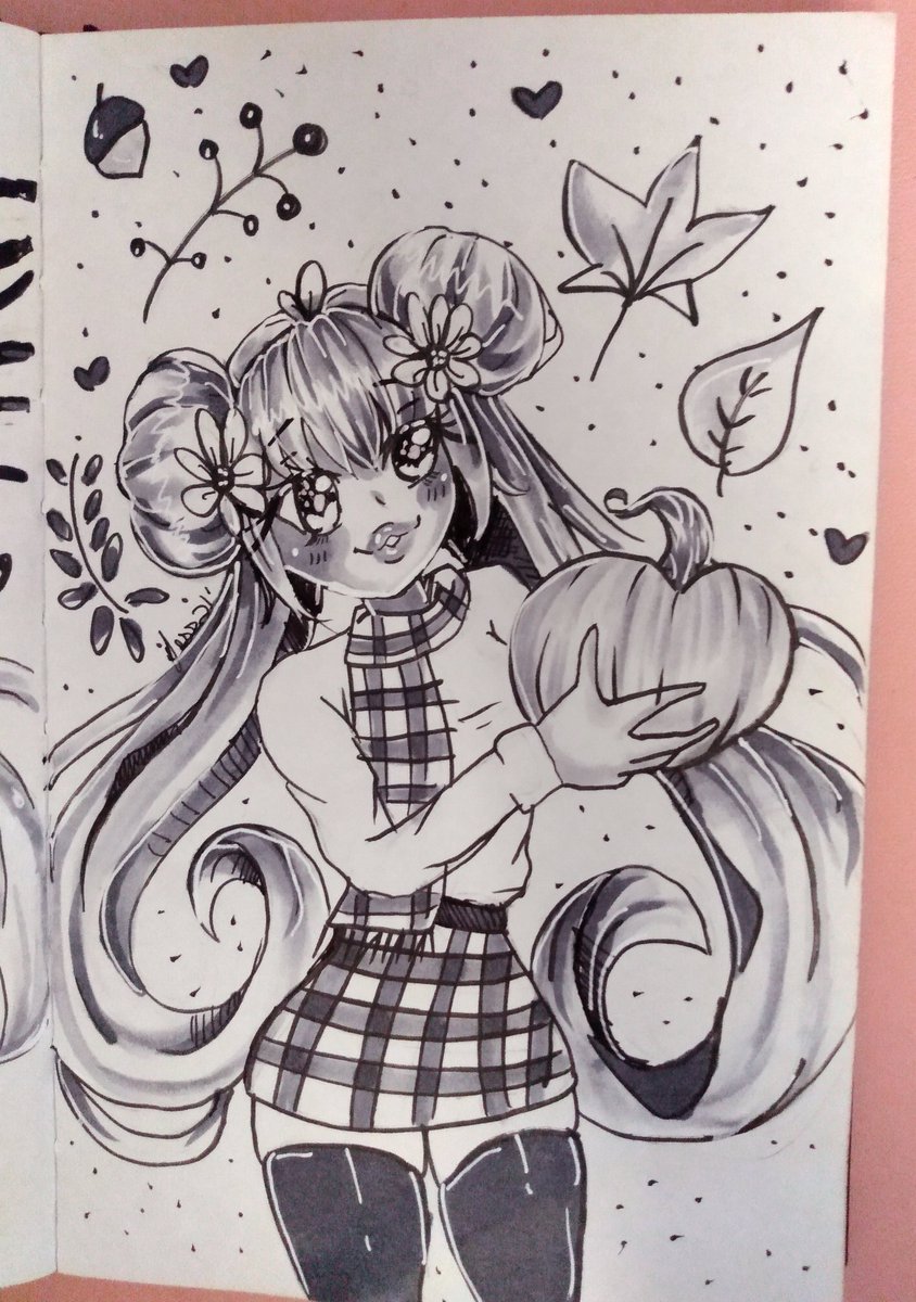 🖤 Cute Girltober Day 27: Fall 🍂 . #cutegirltober #cutegirltober2021 #inktober2021 #animeart #copic #traditionalart #fall