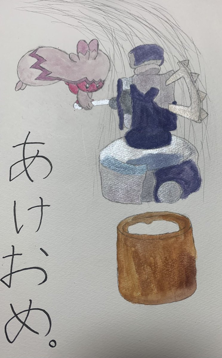 #今月描いた絵を晒そう 新年のデカヌチャンとノコッチぼっちちゃん&色違いみつふしノココッチ
