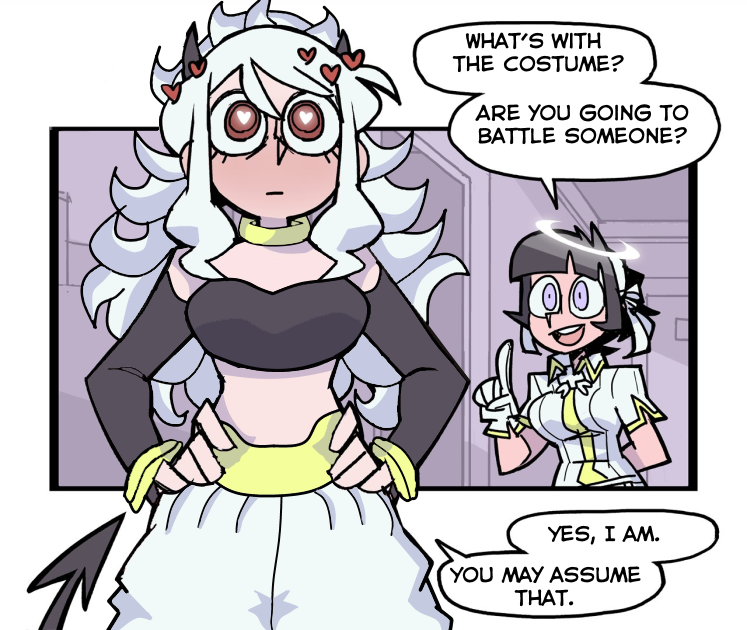 I don't know what I expected from giving Modeus, Android 21 clothes. #Helltaker #Helltakerfanart