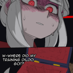 Azazel's "Training" Original Line Art by @Krekkov [With a glowing halo and non-glowing halo] #Helltaker #Helltakerfanart