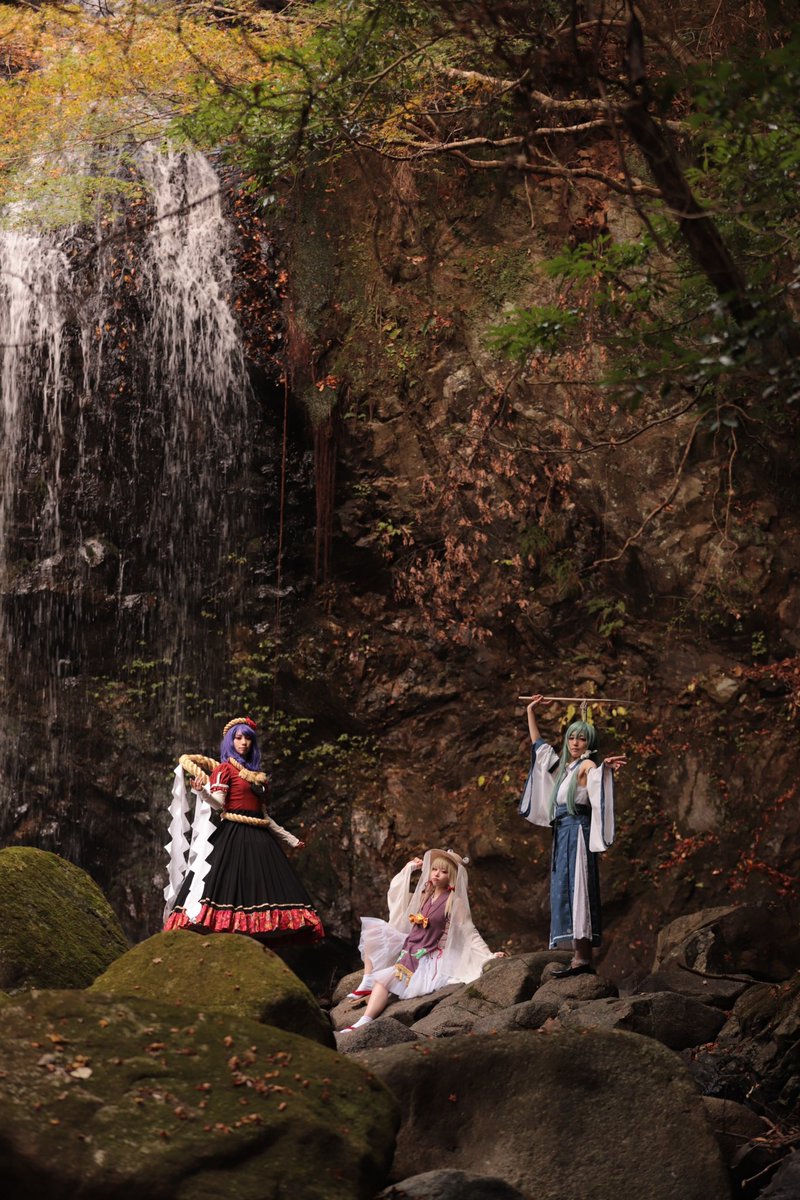 ※コスプレ 風祝と二柱 ++++++++++++++++ 早苗 @Tokiwa_Nagare 神奈子 @JflowerF 諏訪子 @umizarasi 📷 @yutakasiumai