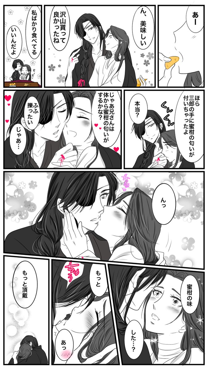 3 15 炬燵と蜜柑と花怜🦋🌸 コタツでぬくぬくイチャイチャして欲しかったんです🥰 描き納め花怜でした💕 ちなみに花城の髪は殿下が結びました🎀 良いお年をお迎えください‼️ #天官賜福 #TGCF #花怜 22/12/31 19:38