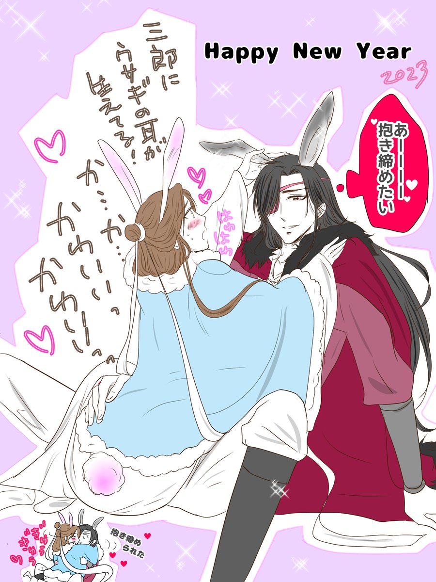 3 22 あけましておめでとうございます🐰 本年も宜しくお願い致します💕 初描き花怜✨✨✨ 2023年も花怜描きまくりたいです🦋🌸 あと原作読了したい‼️ #天官賜福 #TGCF #花怜 23/01/02 21:04