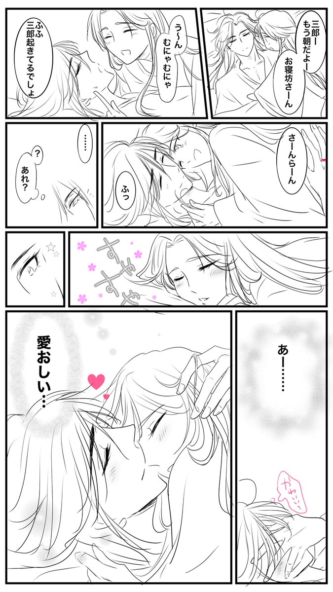 二度寝🦋🌸 夜なのに朝のネタを描くやつー またもrkgkです☺️ 三郎の腕の中は心地が良いと言う事で💕💕 #天官賜福 #TGCF #花怜