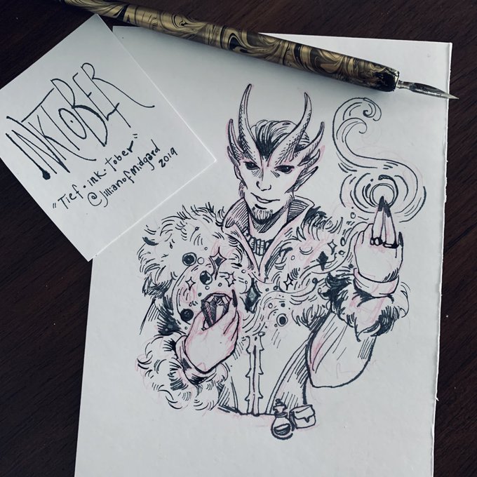 Inktober “Tief-ink-tober” Day 3! ”Wing” The bloodlines of the Tiefling race surge with the magic of an ancient Infernal Pact. #inktober #inktober2019 #inktoberday3 #tiefinktober #tiefinktober2019 #tiefling #dungeonsanddragons #dnd #ttrpg #illustration #jillianofmidgard
