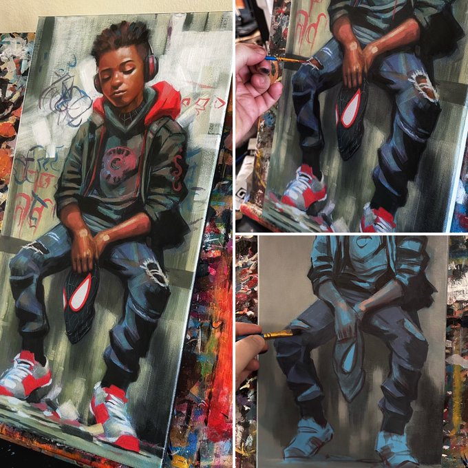 About to sign off on this one! Finishing the other Miles piece now, they’ll both be up on the site a little later today - I’ll post the link here when they’re up 🙌🕷️🎨 #MilesMorales #AcrossTheSpiderVerse