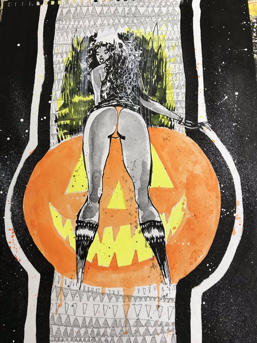Weekend creepin’ in these wicked pummkin boots. Prints available at society6.com/jimmahfood or hit the linktree over in muh profile, young candycorn-eater… 🎃💀🎃 @society6 #halloween #october #boots #spooks #creep #pumpkin #inktober #print #psychedelic #visualfunk #jimmahfood