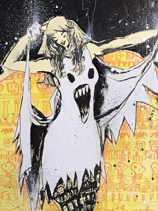 Revenge of the possessed dress. 🎃💀🎃 #mixedmedia #halloween #inktober #possessed #dress #ghost #evil #sinister #october #demonic #psychedelic #destruction #visualfunk #foodone #jimmahfood