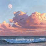 I just wanted to paint something peaceful and beautiful. Sometimes that’s all there is to it. SEA MOON, 16x16”, Acrylic ©2023 Jim Musil 🎨 $1500 #artworks #paintings #landscapepainting #seascape #clouds
