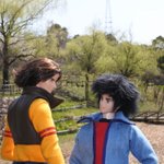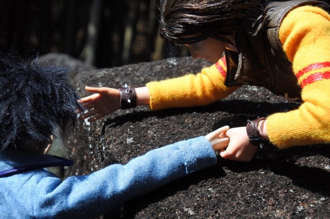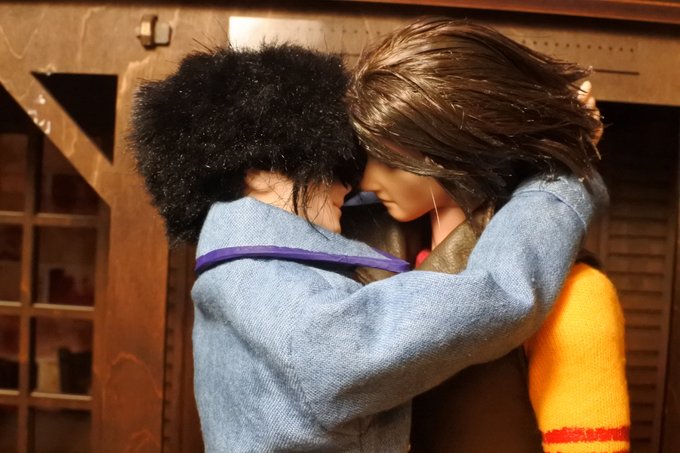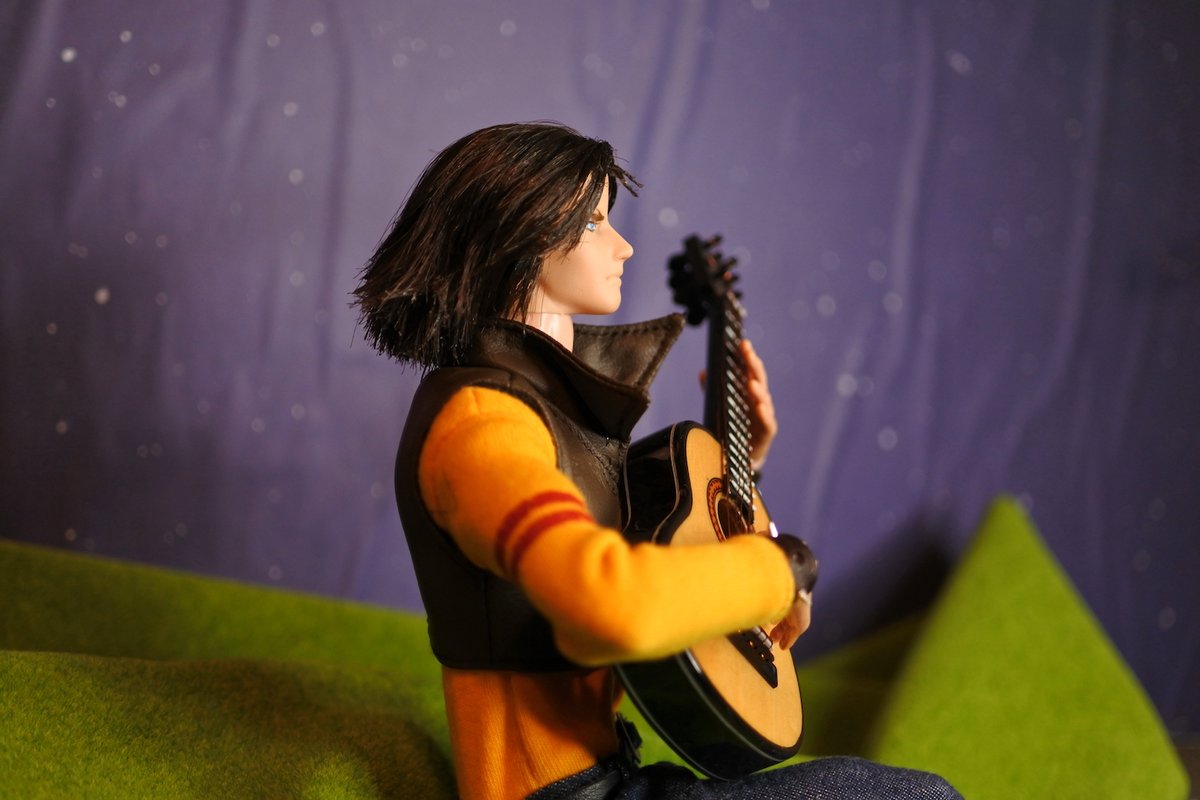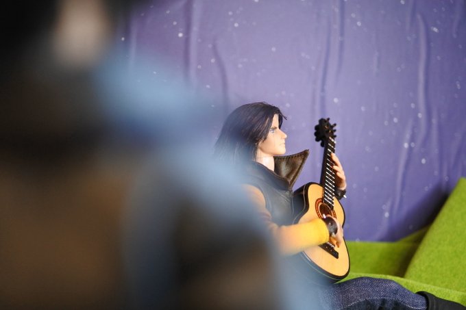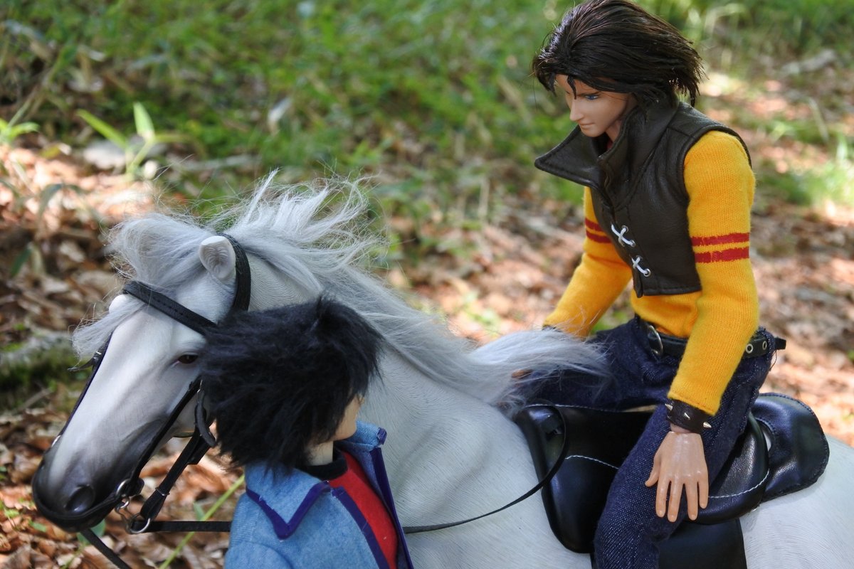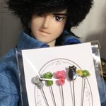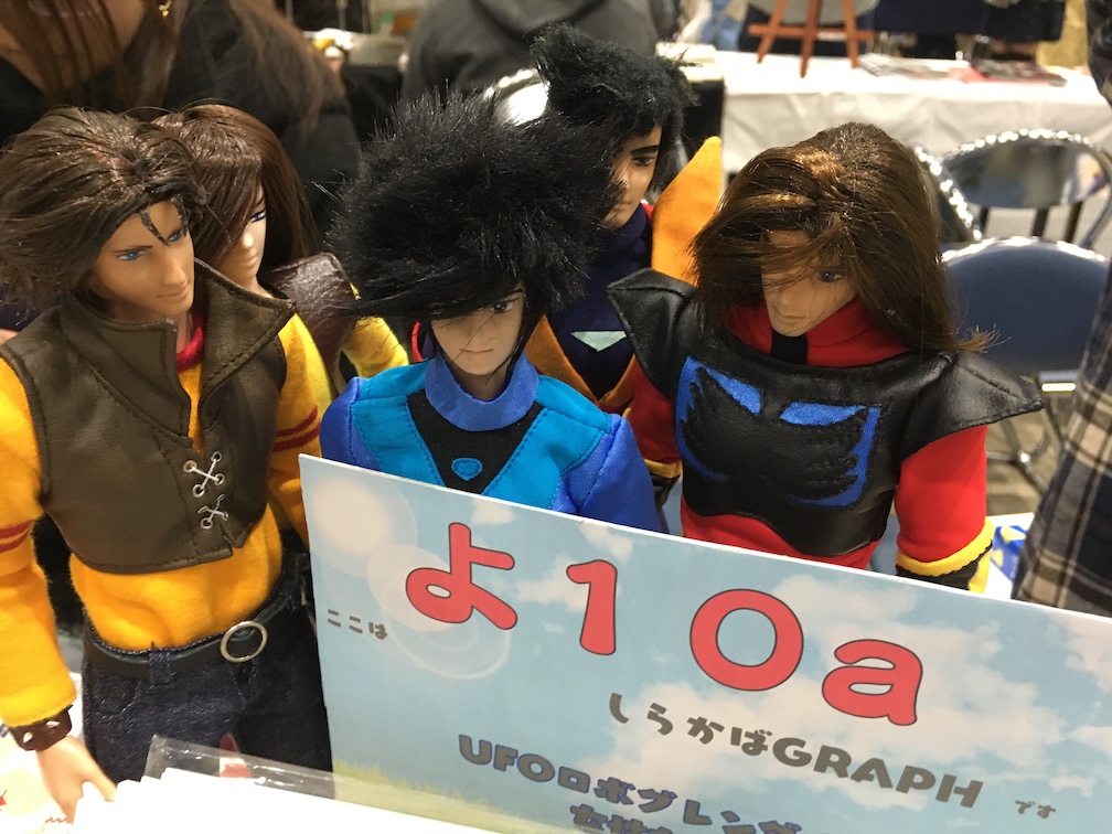 #今夜のドール撮影120分一本勝負 今夜のお題は【ひざをつく】※2枚め 「ねえ、甲児くん、僕のTシャツを知らないかい?」 「さあ」 「さあ、じゃなくてそれ僕のだろう?」 「いいじゃねえか。これが近くにあったんだし。俺のを探してる間にアイデアが逃げちまうだろ」