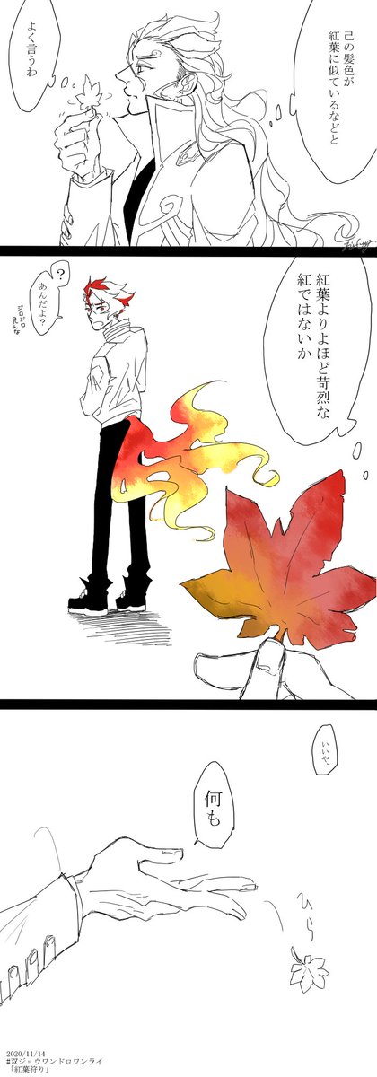 11/14 お題:紅葉狩り 初参加! そーじゅんの胸元がパツパツなのは手癖です。 #双ジョウワンドロワンライ