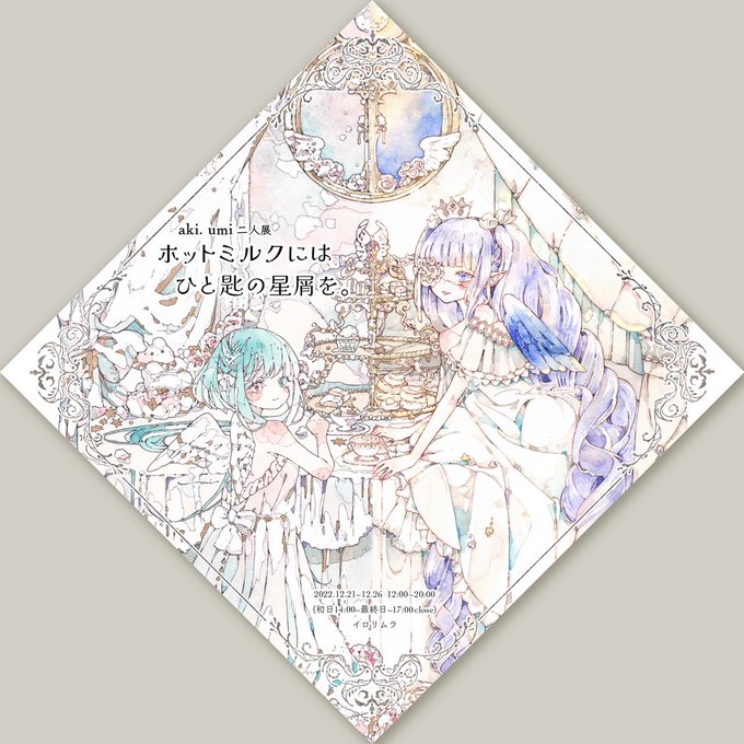 【展示のお知らせ】 aki. umi 二人展 『ホットミルクにはひと匙の星屑を。』 2022.12.21~12.26 12:00~20:00 (初日14:00 最終日~17:00close) 会場 : イロリムラ[89]画廊 #aki_umi_hotmilk