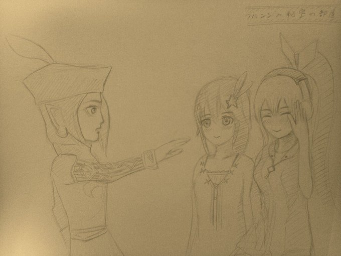 ロマサガとVさんの落書き 「あたしときのそら!」 「ハロー!ミライアカリだよ!」 「お、おう。俺はジャミル、よろしくな!」