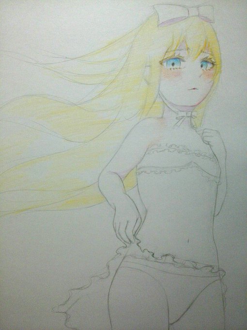 6 64 次の絵。とりあえず鉛筆で水着のざっくりした イメージを描いてみた(´ー`) 22/07/31 10:34