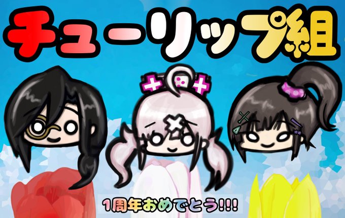 チューリップ組デビュー1周年! おめでとうございます!!! 大好き!!!!! #シェリンの証拠品 #いらすこや #描かれて走