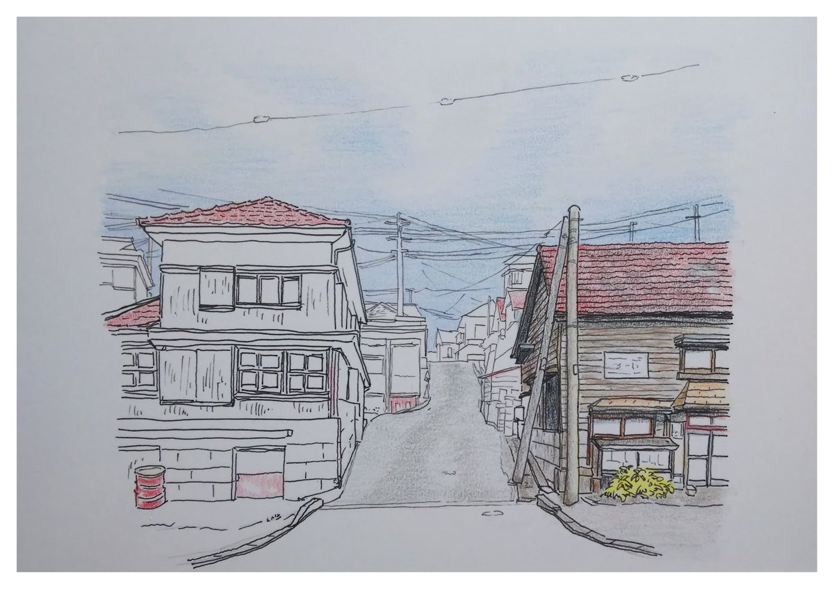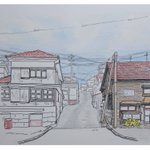 finished.千葉県南房総、和田浦の坂道。#ペン画 #色鉛筆 #風景画 #イラスト #千葉 #南房総 #和田浦 #pen #colorpencil #sketch #landscape #illustration #japan #chiba #minamiboso #wadaura