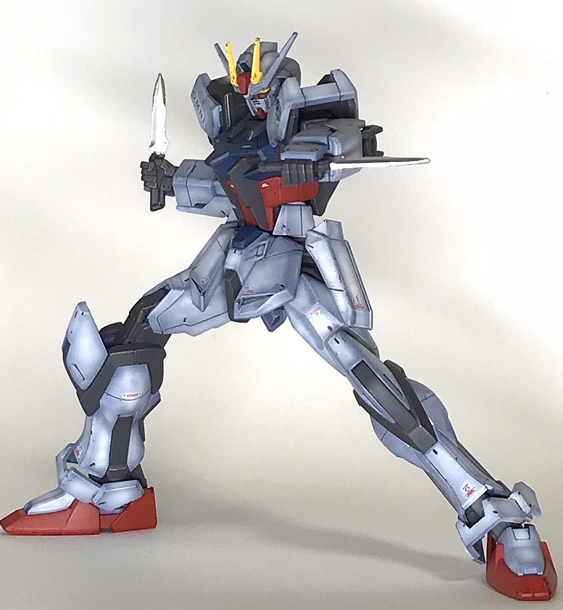 EGストライクガンダム完成です 今回は少しディテール追加してグラデーションとウェザリングで仕上げました 今回スジ彫りは直線しか入れていないのですが結構見栄え良くなった気がします #ガンプラ #ガンプラ好きと繋がりたい