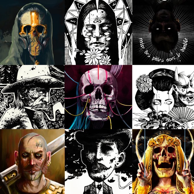 ⚫️💀 Ci dessous, le thread du #inktober2022 et au dessus du dessous, la page avec tous les dessins ensemble. 💀⚫️ twitter.com/Jo_Reeman/st…