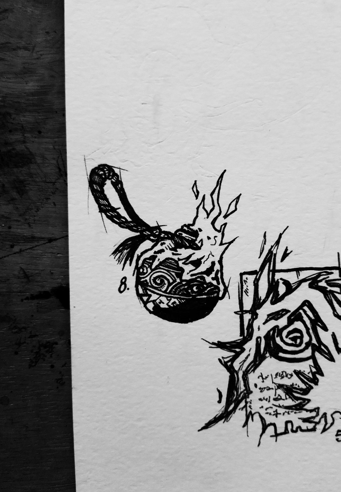 ⚫️💀 Jour 8. Une allumette #match est necessaire pour utiliser une bombe dans #ELDENRING . (c'est completement faux). #inktober2022 💀⚫️