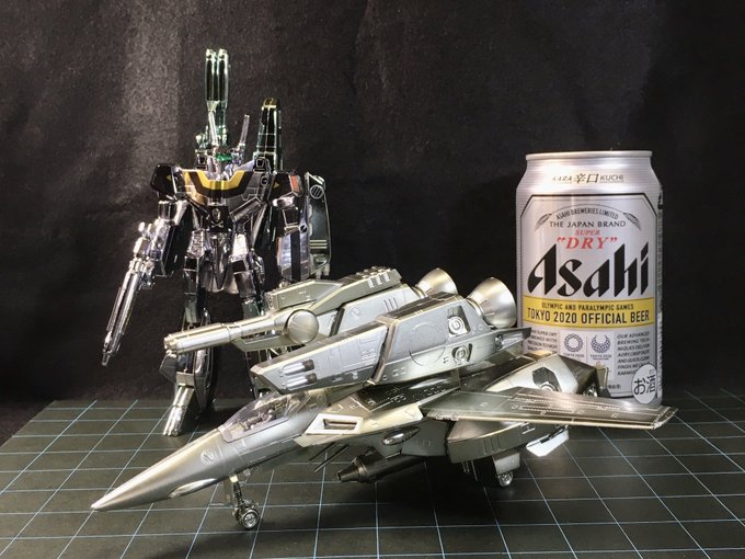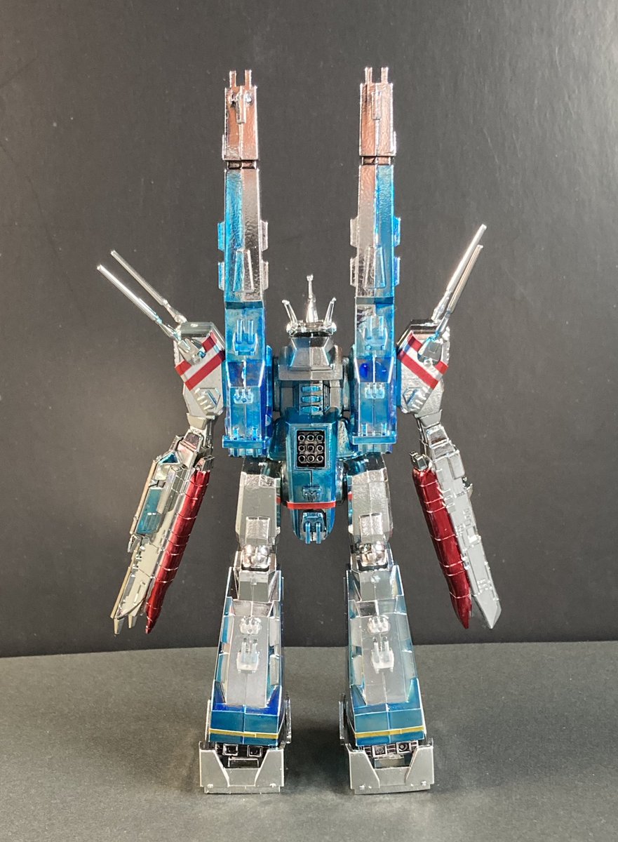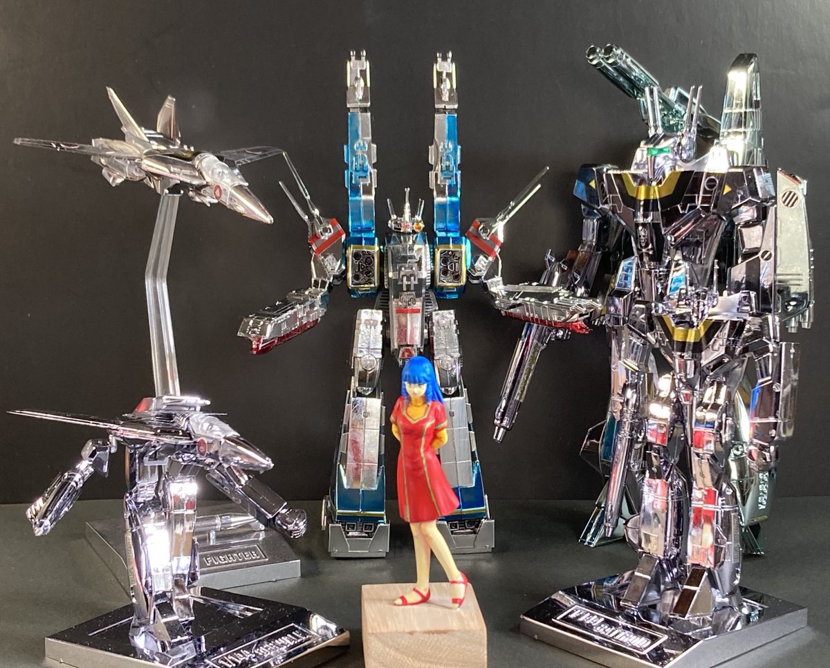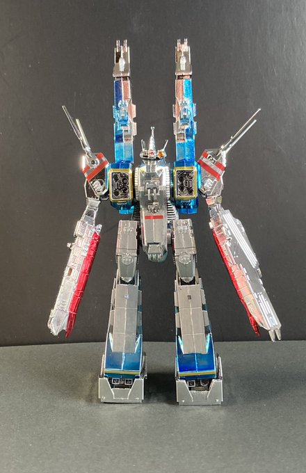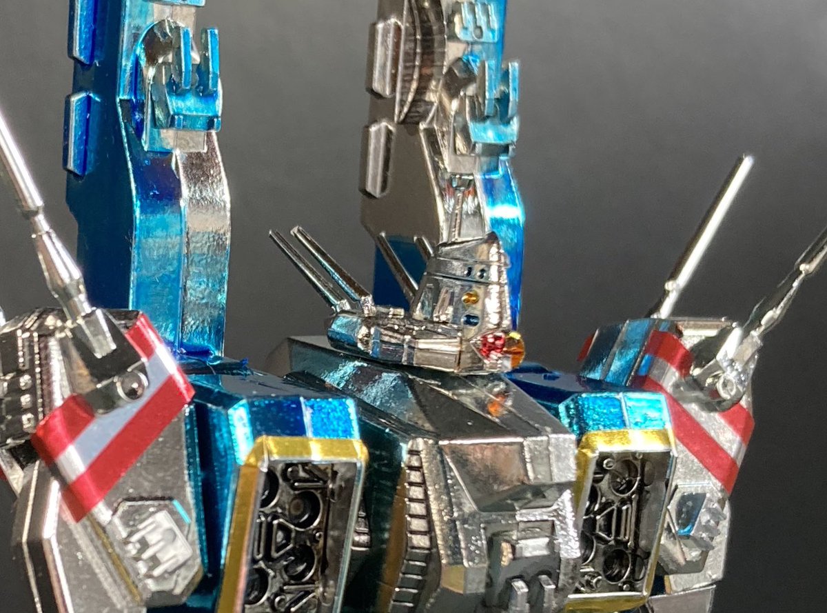 #あげるぜ旧キット花火 #旧キット #マクロス #完成 おはようございます。 1/8000マクロス強行型メッキバージョン完成しました。 メッキ一色が寂しかったのでエナメルクリアで赤と青を足しました。賑やかになったかな。