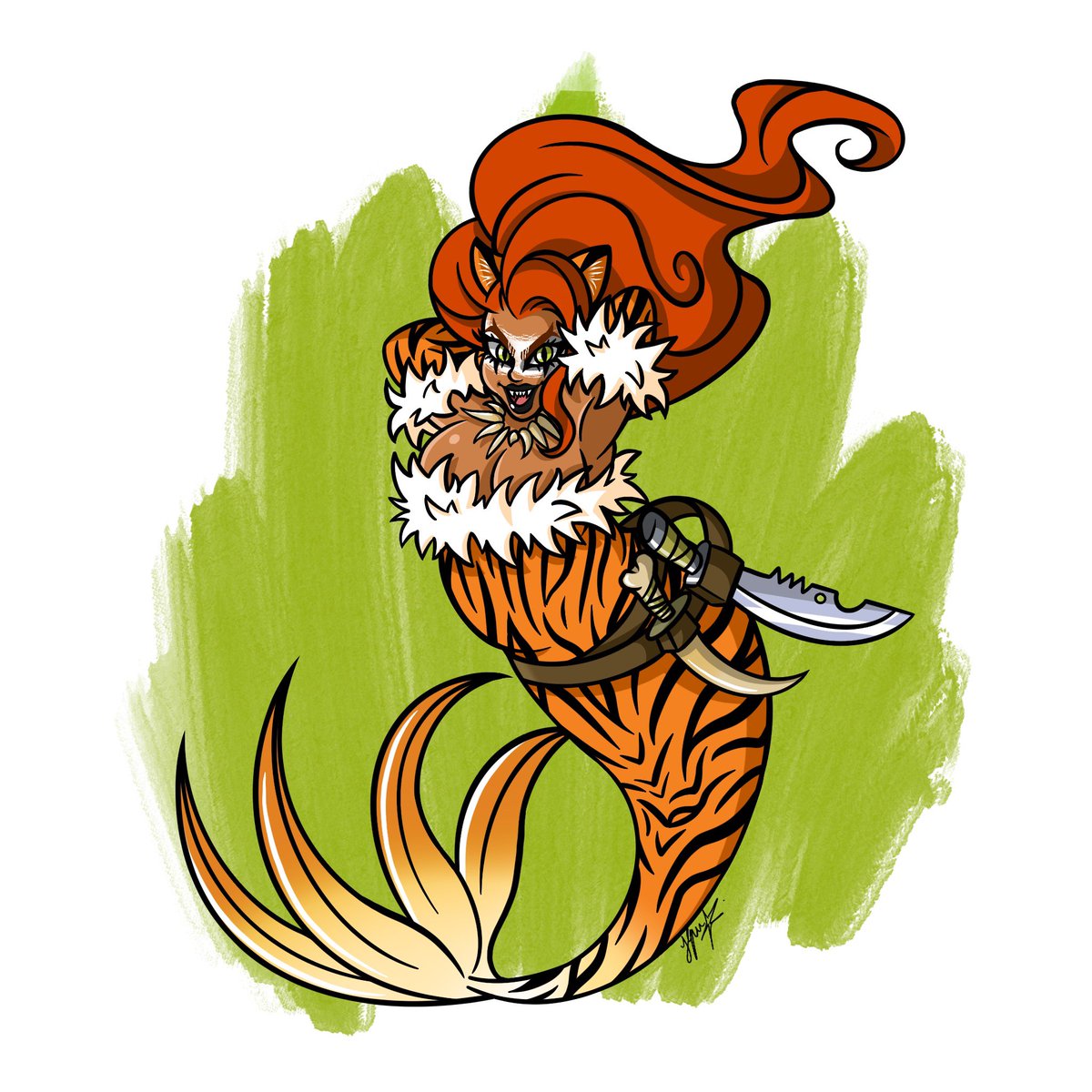 Day 13: #Wildlife 🐅 The ultimate apex predator and hunter of the wild. 🔪 #mermay2021 #mermaid #mermaychallenge #illustration #illustrationartists #digitalart #procreate #procreateart #procreateillustration #tiger #tigermermaid #tigress #hunter #wild #MerMay