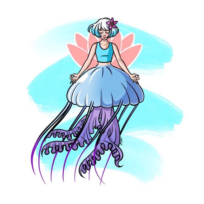 Day 24: #Holistic 🧘♀️ Exhale, close your eyes and float away. 🌺 #mermay2021 #mermaid #mermaychallenge #illustration #illustrationartists #digitalart #procreate #procreateart #procreateillustration #jellyfish #relax #meditation #illustrationoftheday #MerMay
