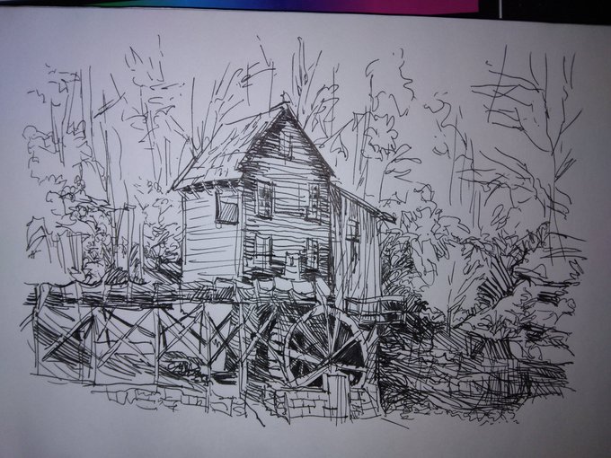 Inktober day 8. Watermill. Looking to make more. #inktober #inktober2022 #Inktoberday8 #watermill #art #artwork