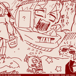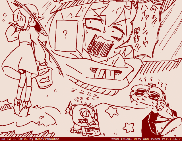 「卵が先よ」「いいや鶏が先だ」 「何の話してるの?」 「鶏と卵、どっちが先に焼いたら食えるかの難問さ」 「う~ん。卵が爆発する!」 「たしかに・・・調理方法によるな」「ドリィちゃんはすごいわね」 #tegaki_dt