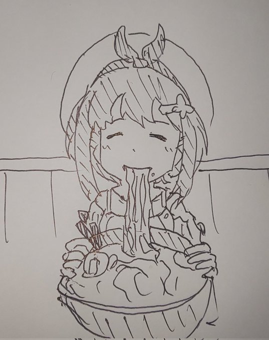 ラーメンを食べるライザを描きました。