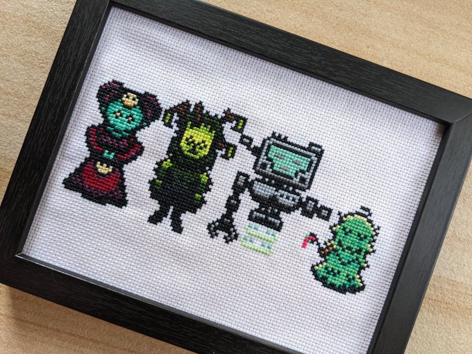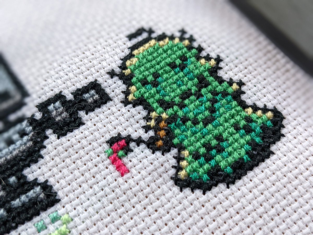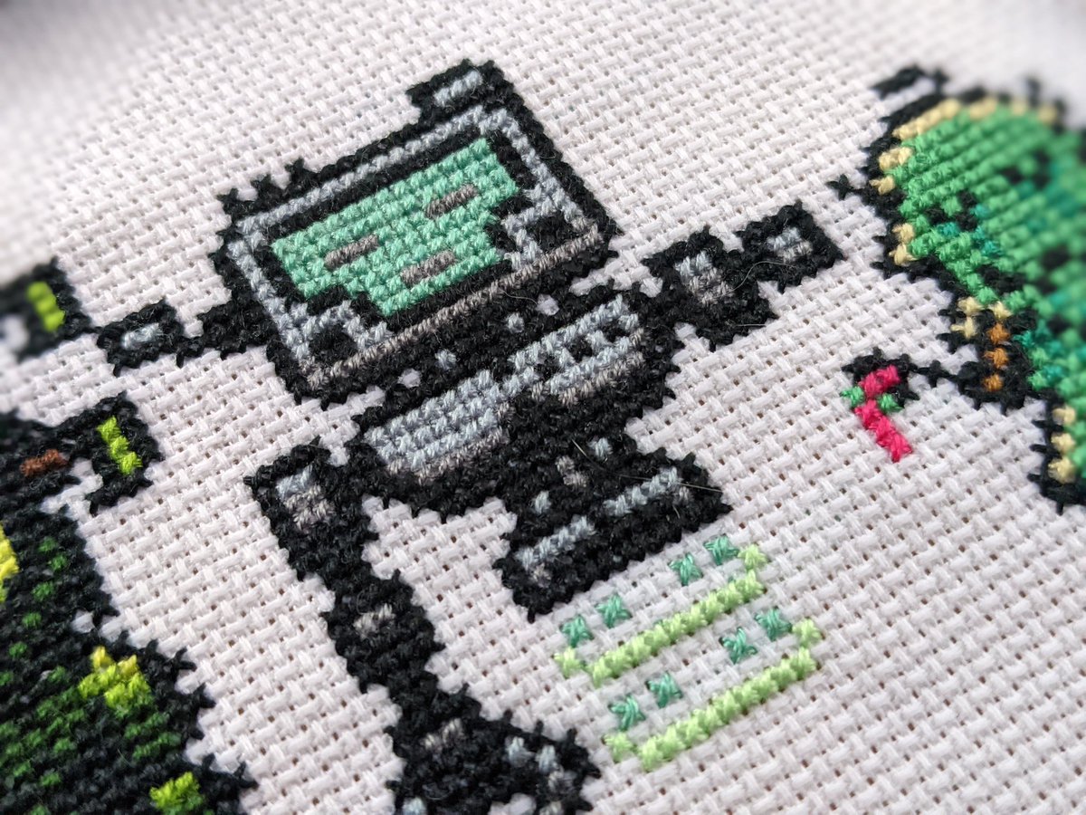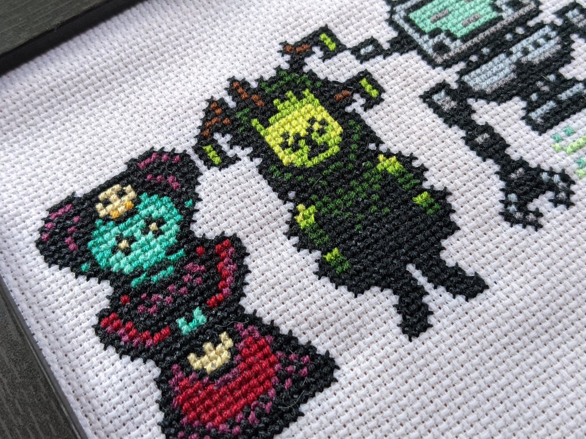 🪩🪩🪩🍷🚬 My latest is a tribute to Disco Elysium, based on @ota_pixelart 's fantastic pixel art #crossstitch #DiscoElysium #pixelart