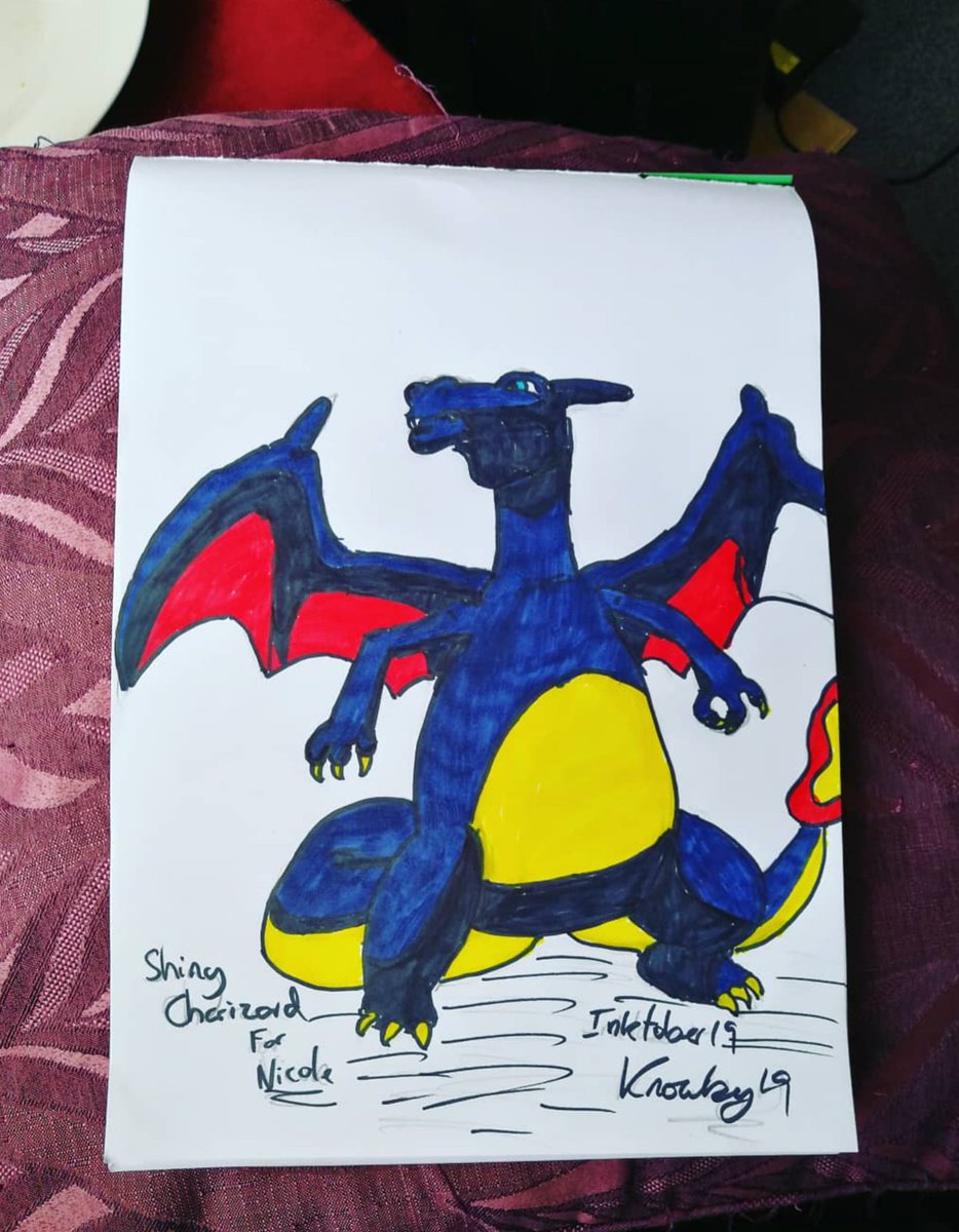 Shiny Charizard for @vintagecpk (The closest colour I currently have, so not quite colour accurate). Inktober 2019 Day 12. #Inktober #Pokemon #ShinyCharizard #Charizard #FanArt