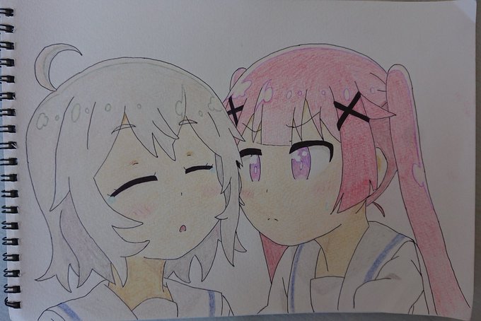 久しぶりにお絵描き!(模写+α) 私に天使が舞い降りたの小之森夏音ちゃんと種村小依ちゃん♪ こよかのマジ尊い、最高のCP(*´ω`*) #わたてん #wataten #アナログ絵 #色鉛筆