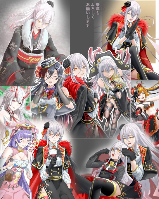 #黒ウィズゆく年くる年 今年描いた絵のまとめ(再)になります 何故か赤と黒が多いです 黒ウィズは大きな過渡期にあると思いますが恙ないことを祈ります レイドや他の方の推しを拝見したりで元気を色々頂いた年でした 良いお年を🎍