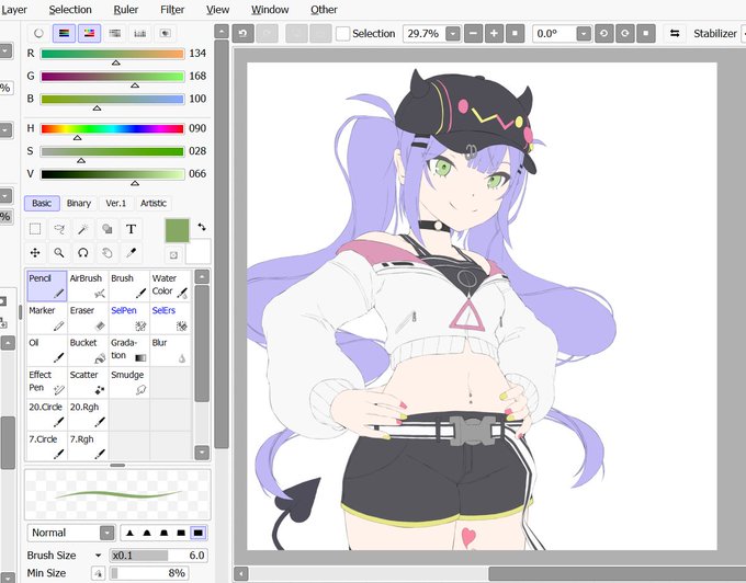 0 1 Finally done both lineart and base colors, lovin' it [] #rkgk #characterdesign #wip 22/09/04 18:39