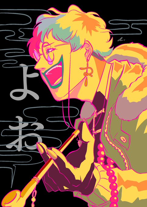 46 256 #ジョー設展 周さんを描きたい欲×変な色でバキバキに塗りたい欲を発散した絵 23/04/26 17:33
